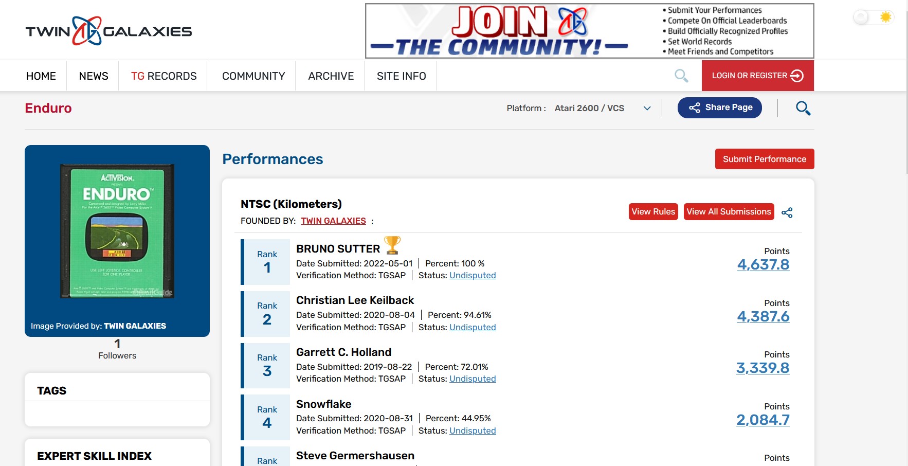 Sutter, que ficou bastante conhecido no Brasil por conta do grupo de humor Hermes & Renato, diz que está curtindo a conquista pessoal. Ele cita que escolheu Enduro porque era o único jogo que ele tinha no Atari e que foi nesse game que ele gastou horas e horas quando era jovem.