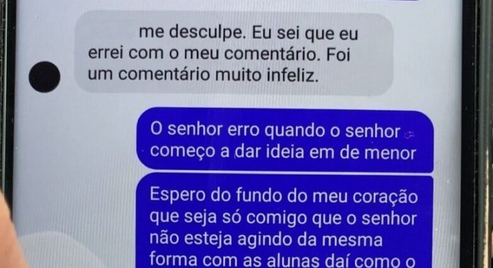 A mulher entregou prints de conversas por meio de um aplicativo entre o diretor e a estudante. Nas mensagens, o homem diz à menina coisas do tipo: “você está uma delícia” e “mexe com a minha imaginação.” Ele teria, inclusive, convidado a garota para sair.