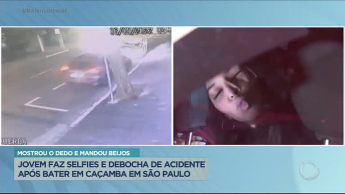 Uma motorista perdeu o controle do carro e bateu violentamente contra uma caçamba na região do Jardins, em São Paulo, na madrugada desta sexta-feira (6). O Balanço Geral teve acesso a imagens impressionantes do acidente. Após o acidente, a jovem debochou da situação, gravando vídeos para as redes sociais dentro da viatura da polícia e chegou a mandar beijos para a nossa equipe. A motorista, que parecia estar alterada, se recusou a fazer o teste do bafômetro.