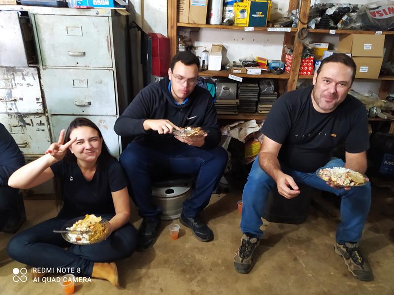 O Secretário de Obras de Bicas Anderson Sarto comemorou seus 64 anos de idade com a sua equipe de trabalho. Nesta sexta-feira dia 03 de junho, foi servido almoço para todos os funcionários da secretaria de obras, e alguns convidados. Lembrando que toda sexta-feira tem almoço para os funcionários da secretaria de obras. Hoje foi especial, porque era aniversário do chefe. Todos comeram a vontade. No cardápio, pernil, arroz, maionese, feijão tropeiro, refrigerantes e não poderia faltar o bolo de aniversário, e rolou até uma mensagem para deixar o aniversariante todo empolgado. Estiveram presentes a esposa e uma das filhas do aniversariante. Infelizmente o prefeito Helber não pôde comparecer por motivos particulares, mas, mandou a sua mensagem via telefone para o seu secretário. Todos comeram e beberam a vontade, e depois voltaram ao trabalho normal. Fica aqui, em nome de todos os funcionários da prefeitura de Bicas, os parabéns para o Secretário Anderson Sarto, felicidades!