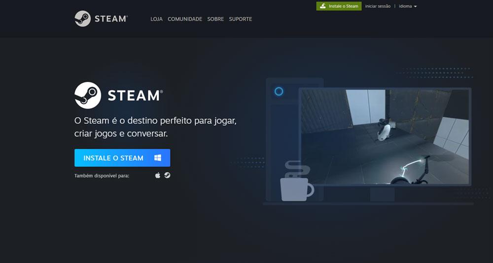 1. O primeiro passo é, caso ainda não o tenha feito, baixar e instalar o launcher da Steam no site oficial da plataforma da Valve. Você pode clicar aqui para ir direto para a página de download do instalador, onde o próprio site fará a análise do seu sistema operacional e indicar a melhor versão do programa para o seu computador;