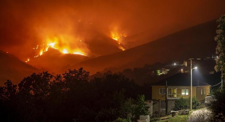 Ao meio-dia, o fogo avançava em pelo menos uma frente, na encosta de uma colina arborizada nesta região montanhosa localizada perto do rio Douro, confirmaram os jornalistas da AFP.