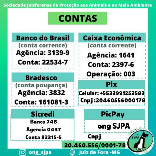 A doação on-line pode ser feita por meio de uma das contas abaixo ou em contato pelas redes sociais.