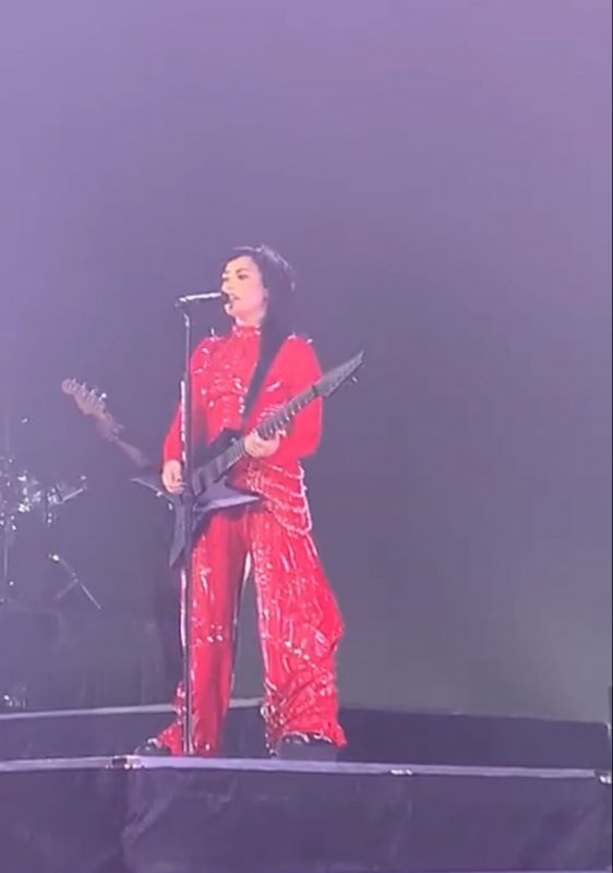 Demi Lovato surgiu no palco do Espaço Unimed (antigo Espaço das Américas) coberta por um macacão vermelho com detalhes cintilantes nesta terça-feira (30). Acompanhada de uma guitarra e uma banda formada por mulheres, a cantora abriu com a faixa-título de seu novo álbum, o “Holy Fvck“.