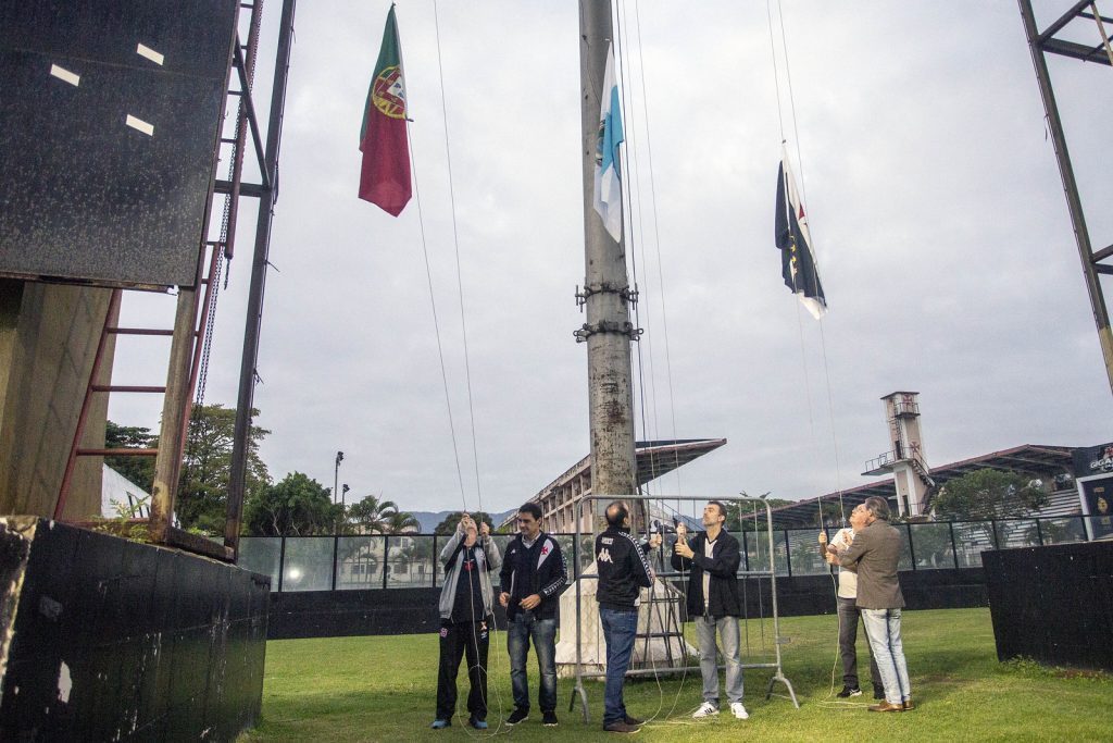 Hasteamento das bandeiras do Vasco, do Brasil, de Portugal e do estado do Rio de Janeiro – O Vasco iniciou cedo sua comemoração dos 124 anos do clube. Com ações em São Januário e nas sedes do Calabouço e da Lagoa, o clube realizou queima de fogos, missa em comemoração, além de proporcionar momento histórico para jovens moradores da Barreira do Vasco.