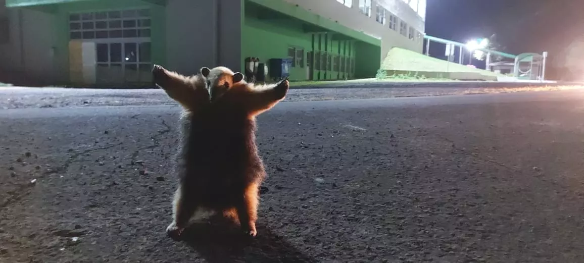 Após terminar uma prova, o estudante estava indo para casa, quando avistou um animal diferente andando na rua, no começo ele comenta que pensou ser uma raposa, mas chegando perto, viu que se tratava de um tamanduá-mirim, o campus do IFPR é cercado por uma grande área verde.