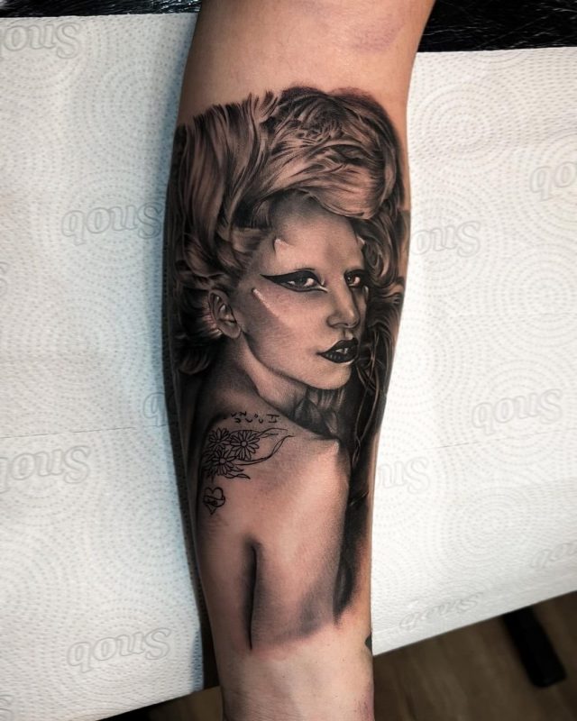 Ficou bem realista, não é mesmo? O responsável foi o tatuador Matheus Sacom. Para Gloria, Lady Gaga representou a causa LGBTQ com o álbum icônico “Born This Way”, que é muito importante para sua trajetória.