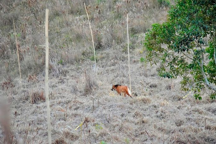Um lobo-guará foi avistado, nesta segunda-feira (4), próximo à área de plantio da fazenda experimental que abriga o projeto “Raízes para o Futuro”, da Universidade Federal de Juiz de Fora (UFJF), localizada no entorno da represa de Chapéu D’Uvas, em Juiz de Fora. De acordo com a UFJF, a presença do animal aponta para a recuperação da fauna e flora da região, cujo trabalho de reflorestamento está sendo desenvolvido por pesquisadores e estudantes da universidade.