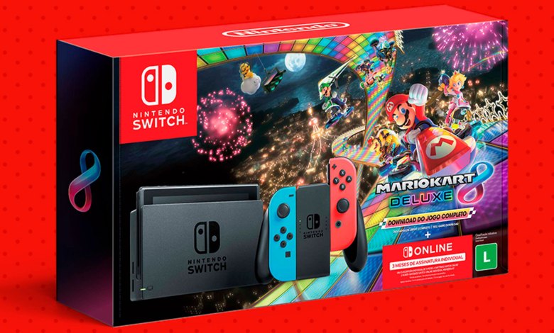 A Nintendo anunciou que em breve começará a vender no Brasil um bundle do Switch contendo o videogame, uma cópia digital de Mario Kart 8 Deluxe e uma assinatura individual de três meses do serviço Nintendo Switch Online.