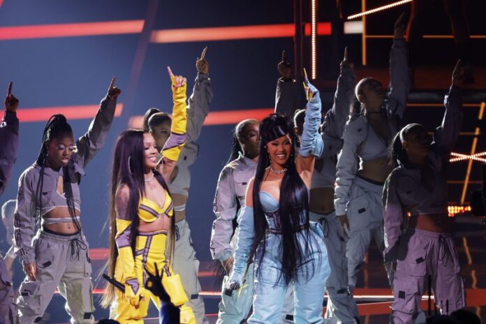 No AMAs, GloRilla estava cantando sozinha quando Cardi B saiu de um carro e surpreendeu a todos. Sua presença atiçou a plateia e as duas foram ovacionadas.