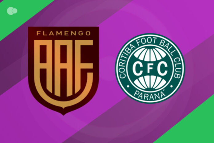 No primeiro tempo, o jogo foi morno. O Flamengo teve as melhores oportunidades, mas não converteu em gol. O Coritiba, que precisava de um empate apenas seguir na liderança, não conseguia criar chances para sair na frente do placar. Nenhuma equipe foi capaz de, efetivamente, dominar o jogo. Os paranaenses até tiveram mais posse de bola, mas a defesa da equipe paulista levou vantagem no duelo durante os primeiros quarenta e cinco minutos.