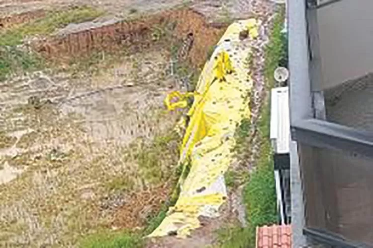 A antiga associação esportiva foi demolida em 2017 para a construção de um empreendimento imobiliário. A preocupação do leitor está relacionada a partes do terreno que estariam cedendo diante do alto volume de chuvas registrado na cidade nos últimos dias, tendo em vista a proximidade de casas e prédios no local. De acordo com o relato recebido, um muro da igreja vizinha ao terreno já teria desabado mesmo com a colocação de lonas de plástico como medida paliativa.