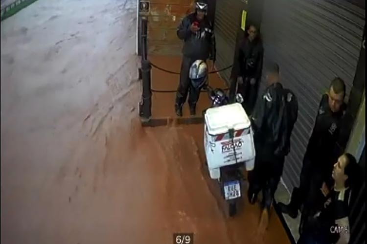 Lucas, que postou o vídeo no Instagram do estabelecimento, conta que resolveu publicar as imagens para mostrar que a velocidade da água deixa os atingidos de mãos atadas. “Não dá tempo de fazer nada”, diz o lojista.