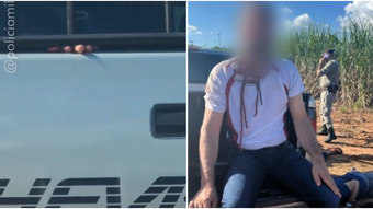 Foi lá que a PM conseguiu resgatar o homem, que chegou a ser filmado por uma pessoa não identificada com os dedos para o lado de fora da caminhonete e fazendo sinal.