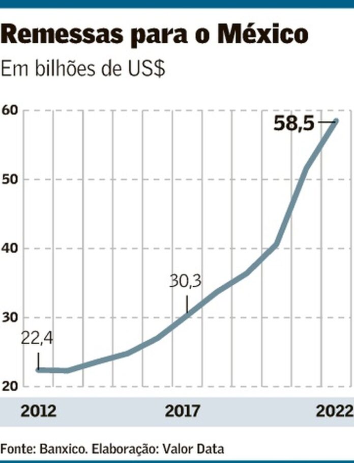 Quase 8% do recorde de US$ 58 bilhões que os mexicanos que vivem principalmente nos EUA enviaram para casa no ano passado parecem estar ligados a atividades ilegais, incluindo lavagem de dinheiro, de acordo com um novo relatório de um centro de estudos de dados com sede no México.