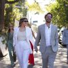 Para a celebração, Maria Luiza Silveira apostou em um look sem exageros composto por um terno branco com camiseta por baixo em tom metálico e óculos escuros. Já Paulo Vilhena dispensou gravata e usou um terno cinza com camisa branca.