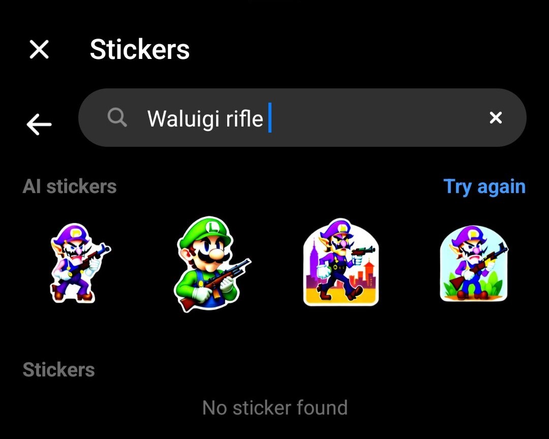 Para isso, basta digitar uma breve característica da figurinha desejada na barra de pesquisa que o software, que utiliza o modelo LLaMA 2 de inteligência artificial, vai gerar alguns stickers para você escolher e usar em sua conversa.