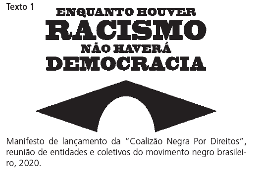 O texto I faz uma crítica à persistência do racismo na sociedade brasileira, o que inviabiliza a concretização da democracia (o racismo gera muita violência e exclusão).