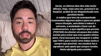 O influenciador já começou a fazer fisioterapia, mas disse que ainda sente que parte do rosto não voltou ao normal: “Ainda tenho uma parte da minha boca formigando, como se estivesse dormente.” Mas ele tranquilizou os fãs que já estava bem melhor.