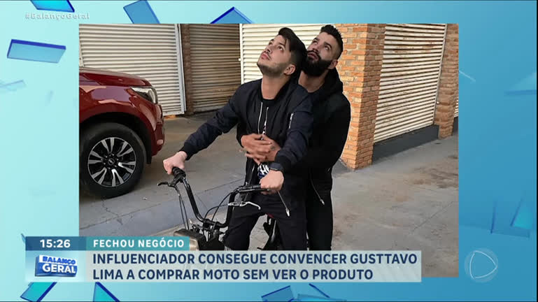 O influenciador Fidelis Falante conseguiu vender uma moto para o cantor Gusttavo Lima. O cantor comprou o automóvel sem ver o produto. O influenciador disse que a moto era a cara do sertanejo e que vinha até com um brinde: um curso de mecânica.