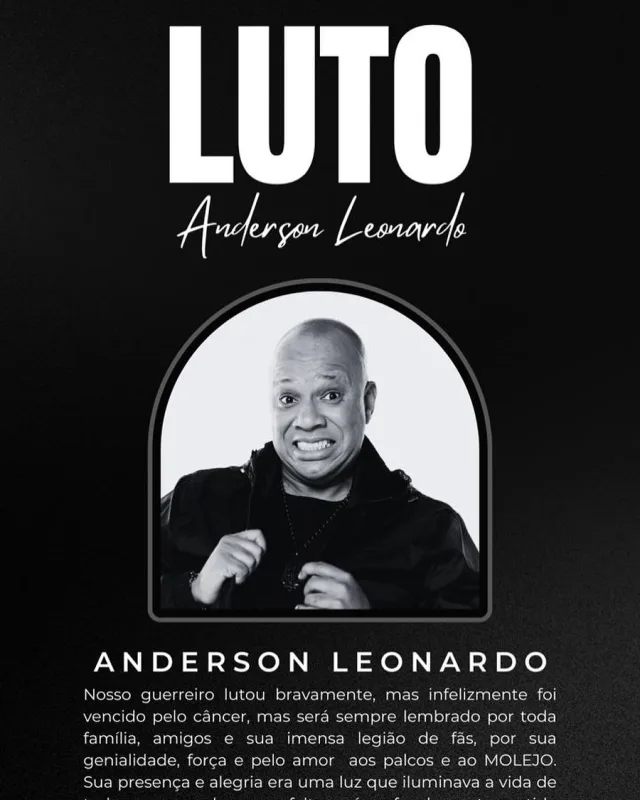 Anderson Leonardo, de 51 anos, morreu morreu nesta sexta-feira (26). Ícone do pagode dos anos 1990, o músico do Molejo descobriu há cerca de um ano e meio um diagnóstico de câncer na região inguinal e não resistiu às complicações. A informação do falecimento foi confirmada pela conta oficial do grupo no Instagram.