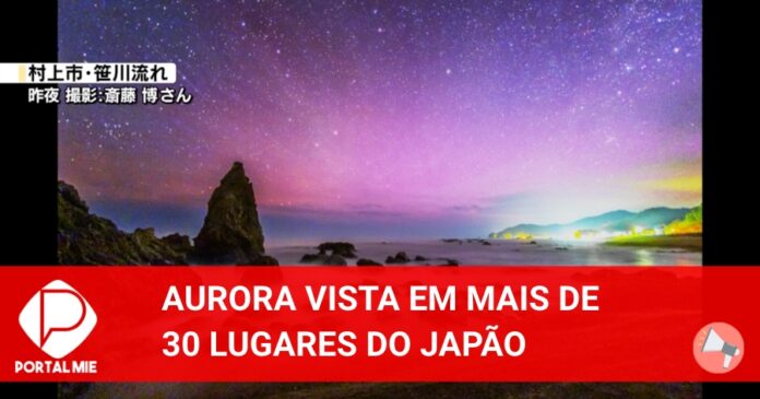 Uma pessoa capturou uma foto da aurora na cidade de Murakami (Niigata). “Quando a lua se pôs uma luz vermelha se espalhou no céu. Nunca pensei que pudesse vê-la no arquipélago principal”, exclamou Sato, o fotógrafo, na noite de sábado (11).