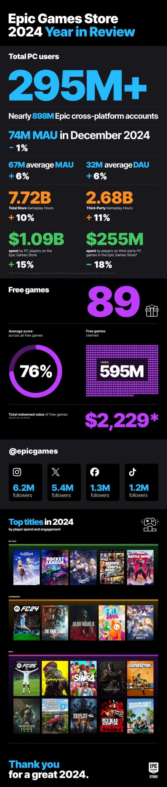 Você pode ver o infográfico completo abaixo, que também analisa quais jogos foram os maiores e também como os canais sociais de Epic estão se saindo.