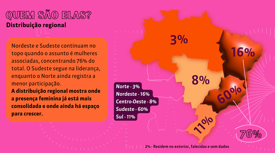 Ao analisar a distribuição de renda entre as mulheres por categoria, observa-se que as autoras se destacam, concentrando 73% do total recebido pelas mulheres. Em contrapartida, as versionistas registraram a menor participação, representando apenas 0,5% da arrecadação. Já as intérpretes corresponderam a 22,5%, as músicas executantes a 2,5% e as produtoras fonográficas a 1,5%. Ou seja, a presença feminina ainda precisa ser fortalecida em diversas áreas do setor.