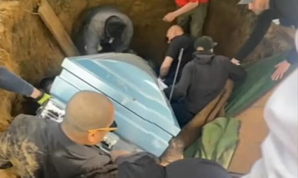 Durante sepultamento na Filadélfia, caixão e familiares caíram em cova de dois metros. Filho do falecido ficou desacordado.